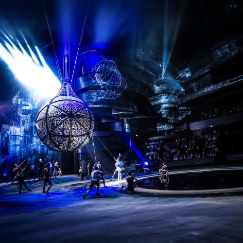 Unlike any other show, La Perle unfolds within a purpose-built 1,300-seat aqua theater holding 2.7 million gallons of water. Watch in awe as the stage transforms from dry land to a breathtaking aquatic arena in moments, with acrobats diving, flying, and dancing through cascading fountains and dazzling special effects.