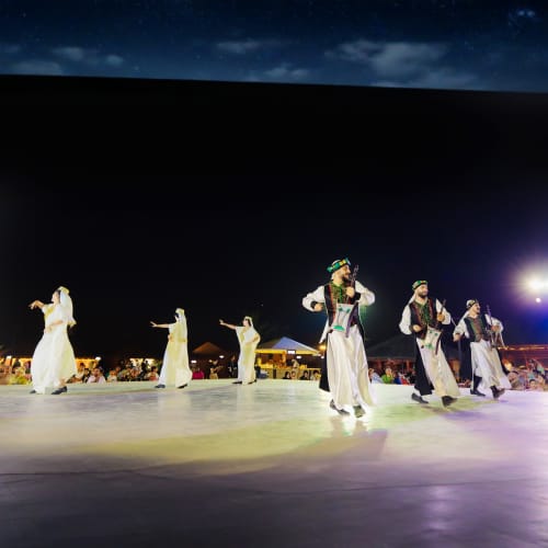 As night falls, savor a mouthwatering BBQ buffet featuring both vegetarian and non-vegetarian dishes. The evening comes alive with captivating Tanura performances and graceful belly dancing — a celebration of art, rhythm, and Arabian spirit.