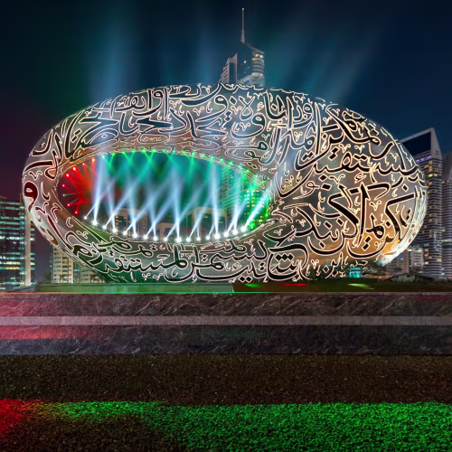 Witness Dubai’s leap into the future with a photo-worthy stop at the Museum of the Future, celebrated for its visionary design. After a delicious lunch at Oasis Mall, visit the majestic Farooq Omar Bin Khatib Mosque, a symbol of cultural harmony, followed by a scenic photo opportunity at the iconic sail-shaped Burj Al Arab.